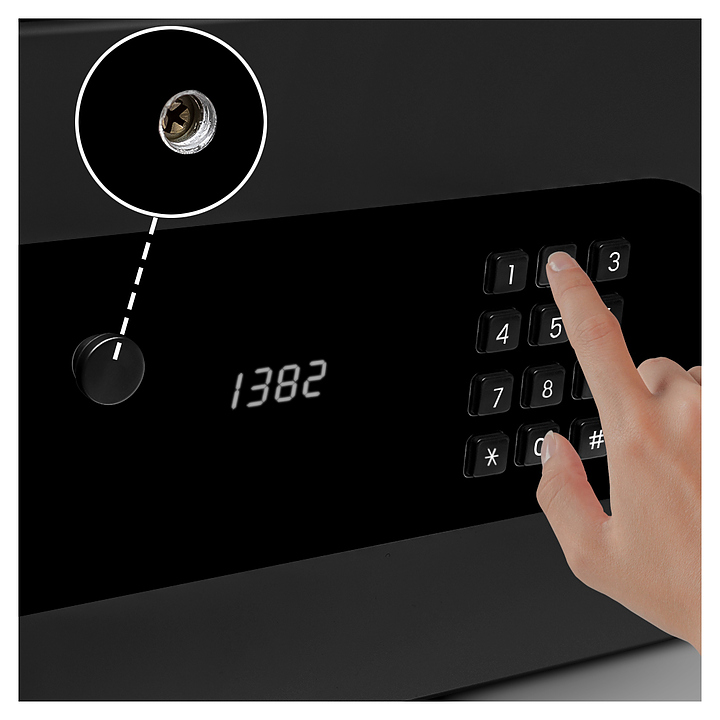 Сейф MEYVEL SF8-430-195 предназначен для безопасного хранения документов и различных ценностей в гостиницах, отелях, офисах, квартирах и загородных домах. Модель оснащена электронной клавиатурой, белым дисплеем и внутренней подсветкой. Корпус выполнен из стали. Батарейки в комплект поставки не входят и приобретаются отдельно. Особенности:
