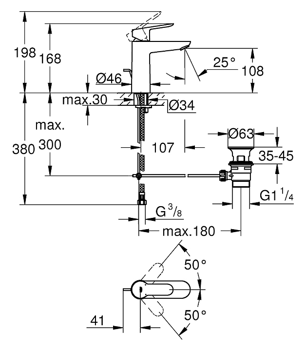 Смеситель для раковины Grohe BauEdge 23758000 предназначен для подачи горячей и холодной воды в ванных помещениях. Модель оснащена донным клапаном и керамическим картриджем, обеспечивающим плавный ход рычага смесителя, контроль и точность при выборе напора и температуры воды. Смеситель отличается простой установкой благодаря системе быстрого монтажа и оснащен ограничителем расхода воды. Изделие выполнено из латуни, которая отличается прочностью, долговечностью и устойчивостью к перепадам температуры, донный клапан - из пластика. Дополнительные характеристики:
