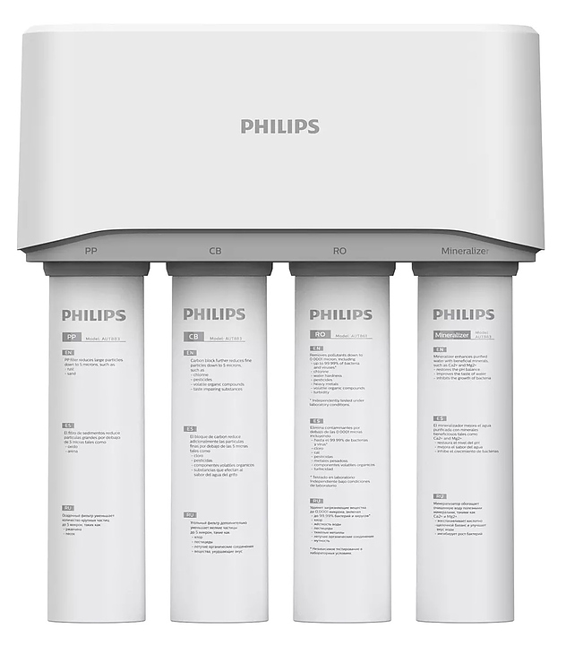 Обратноосмотическая система Philips AUT3268/10 используется в частных домах и коттеджах для эффективной очистки водопроводной воды от извести, хлора, тяжелых металлов, пестицидов и антибиотиков. Ультратонкая очистка обеспечивается за счёт высокопроизводительной мембраны с мелкопористой структурой, что обеспечивает первоклассное качество водоочистки и не позволит проникнуть загрязняющим веществам в воду. Корпус выполнен из высокопрочного пищевого пластика. В комплект поставки входит накопительный бак, кран для подачи воды и всё необходимое для установки и эксплуатации системы. Особенности: