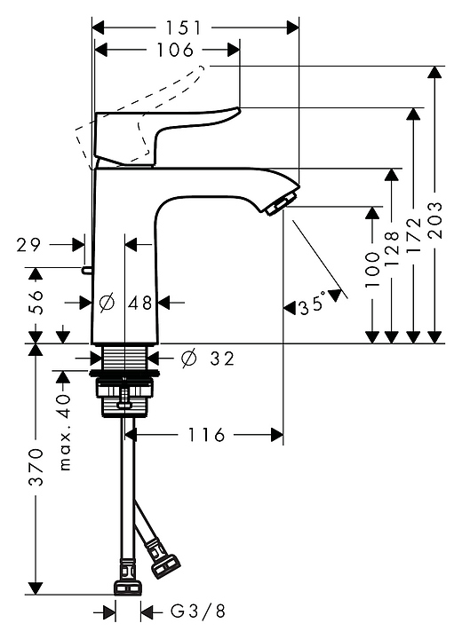 Смеситель для раковины Hansgrohe Metris 31080000 со сливным гарнитуром