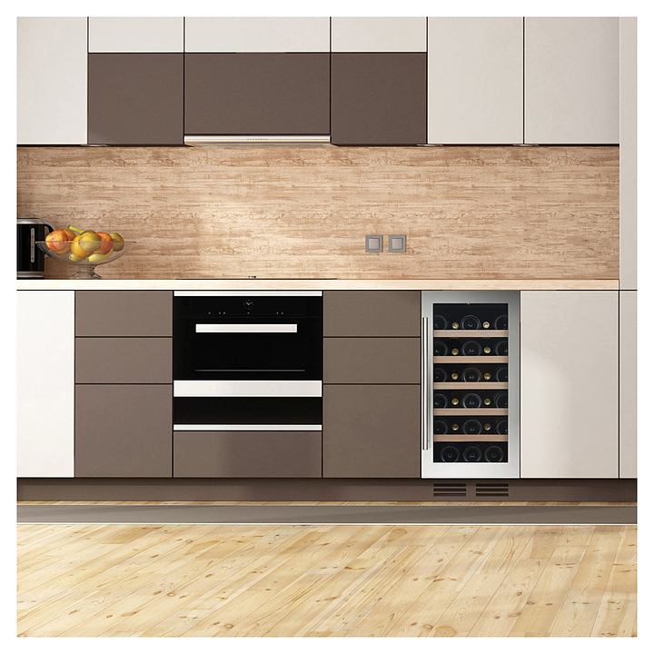 Винный шкаф Dunavox DAUF-32.83SS предназначен для демонстрации, хранения и создания оптимальных условий для сохранения всех вкусовых свойств вина в бутылках на предприятиях общественного питания, торговли, в барах, ресторанах, специализированных магазинах, частных домах или квартирах. Модель оснащена сенсорной панелью управления, 4 выдвижными полками и электронным термостатом. Корпус выполнен из стали, дверь - из рамы серебристого цвета и двойного затемненного стекла с защитой от ультрафиолетовых лучей, выдвижные полки - из массива бука. Особенности: