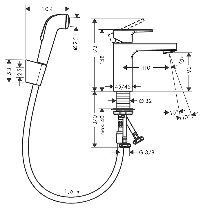 Смеситель для раковины с гигиеническим душем Hansgrohe Vernis Shape 71216000