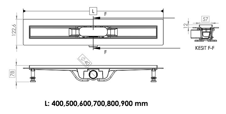 Лоток душевой TIMO SMART PLUS 60 см с решеткой DOUBLE GAP