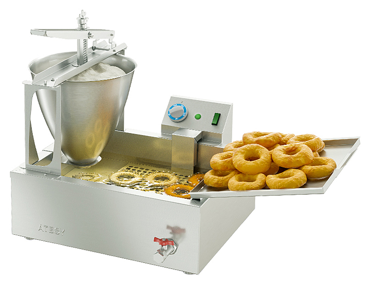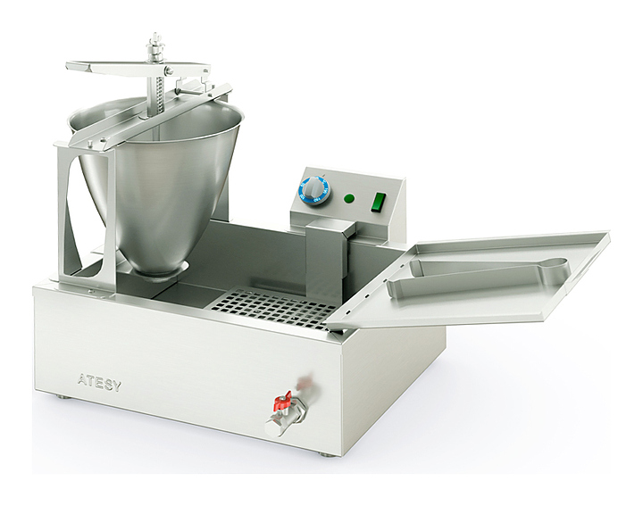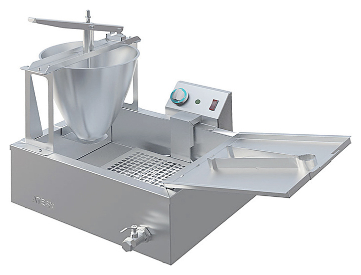 Пончиковый аппарат ATESY Гольфстрим-1-34-3 используется на предприятиях общественного питания и торговли для формирования и приготовления в разогретом масле пончиков традиционной формы. Модель оснащена фритюрной ванной, ручным дозатором теста, блоком управления с электронагревателем и поддоном для выкладки готовых пончиков. Все части аппарата, контактирующие с продуктами питания, изготовлены из пищевой нержавеющей стали. В комплект поставки входит кулинарный пинцет. Особенности: