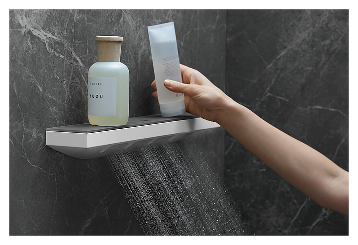 Верхний душ Hansgrohe Rainfinity 26243700 предназначен для использования в ванных комнатах. Модель имеет душевую головку прямоугольной формы и образует большую зону принятия душа. Известковый налет на силиконовых форсунках с легкостью удаляется благодаря технологии QuickClean, достаточно слегка потереть и структура струи снова идеальна. Изделие выполнено из безопасного стекла, поверхность полочки - графит. Особенности: