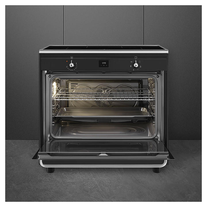 Варочный центр Smeg CG90IANT9 предназначен для приготовления первых, вторых, третьих блюд в наплитной посуде в ресторанах, частных домах, квартирах и отелях. Модель оснащена сенсорным управлением, электронным таймером, 4 зонами приготовления и духовкой. Духовка оснащена галогеновой подсветкой, металлическими направляющими и покрыта эмалью Ever Clean. Корпус выполнен из эмалированной стали, переключатели - из нержавеющей стали с обработкой против отпечатков пальцев. Режимы приготовления:
