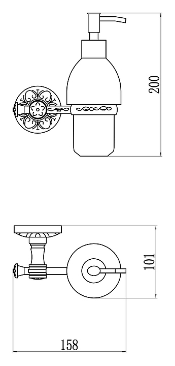 Правосторонний дозатор Savol S-005831B предназначен для подачи жидкого мыла в ванной комнате. Модель выполнена в стиле ретро. Элегантные аксессуары коллекции 58b идеально дополнят дизайн любой ванной комнаты. Модель монтируется на стену с помощью шурупов. Изделие выполнено из латуни, которая отличается прочностью и долговечностью. Дополнительные характеристики: