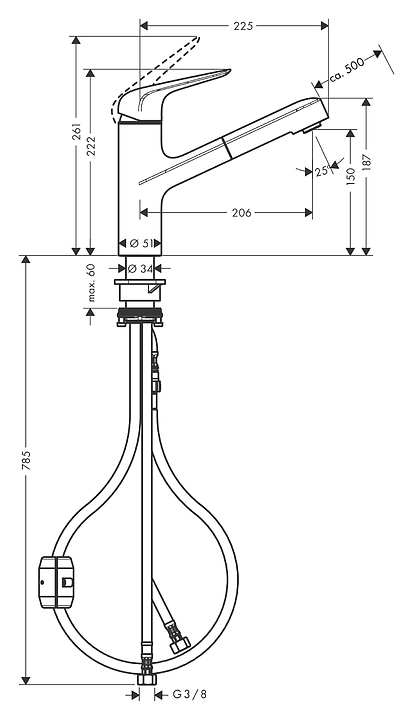 Смеситель для кухни с вытяжным изливом Hansgrohe Focus M42 71814000