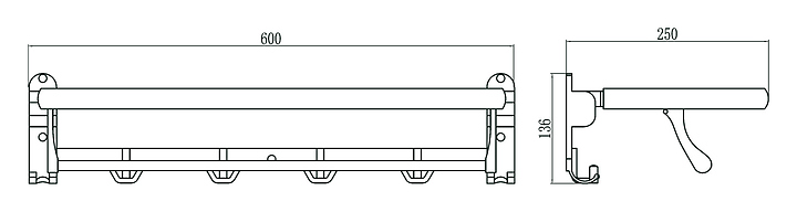 Откидная полка Savol S-007099 используется в ванных комнатах для размещения халатов, полотенец и других банных принадлежностей. Модель оснащена 6 двойными крючками, полотенцедержателем и монтируется на стену с помощью шурупов. Изделие выполнено из нержавеющей стали. Дополнительные характеристики: