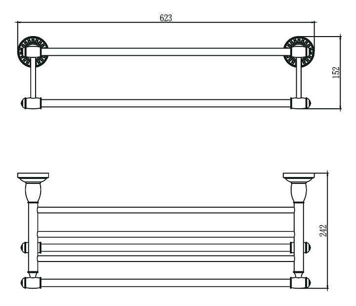 Полка Savol S-606644H используется в ванных комнатах для размещения халатов, полотенец и других банных принадлежностей. Элегантные аксессуары серии 66h выполнены в стиле ретро и дополнят дизайн ванной комнаты. Модель оснащена полотенцедержателем и монтируется на стену с помощью шурупов. Изделие выполнено из латуни, которая отличается прочностью и долговечностью. Дополнительные характеристики: