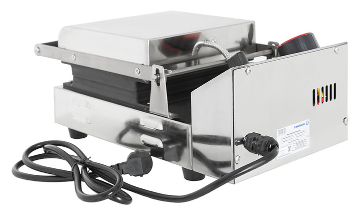 Вафельница Foodatlas EB-M3 Eco используется на предприятиях общественного питания и торговли для приготовления прямоугольных вафель. Модель оснащена терморегулятором, 2 нагревательными пластинами и ненагревающимися ручками. Изделие выполнено из хромированной нержавеющей стали и окрашено, детали, контактирующие с пищей - из нержавеющей стали с антикоррозийным покрытием. Особенности: