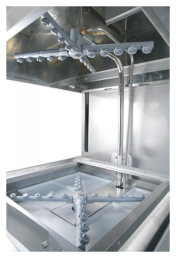 Посудомоечная машина Hi Chief DW-1000+DR+DET+RA ECO предназначена для мытья в кассетах различной посуды, стаканов, чашек и столовых приборов с применением жидких моющих и ополаскивающих средств на предприятиях общественного питания и торговли. Модель оснащена вертикальным подъемным куполом с горизонтальной рукояткой, бойлером, электродвигателем, верхними и нижними моечными рукавами, насосом-дозатором моющего и ополаскивающего средства, дренажным насосом, кабелем питания с вилкой, электромеханической панелью управления с поворотным переключателем и клавишей слива. Корпус и внутренняя облицовка камеры выполнены из нержавеющей стали, моечные рукава – из высококачественного термостойкого пластика. В комплект поставки входит моечная кассета, заводская упаковка и инструкция по эксплуатации. Особенности: