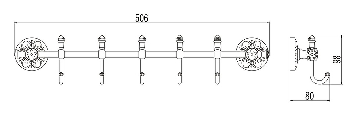 Вешалка-планка Savol S-006675C используется в ванных комнатах для размещения халатов, белья и полотенец. Серия 66с выполнена в стиле ретро. Элегантный аксессуар идеально дополнит дизайн любой ванной комнаты. Модель оснащена 5 крючками и монтируется на стену с помощью шурупов. Изделие выполнено из латуни, которая отличается прочностью и долговечностью. Дополнительные характеристики: