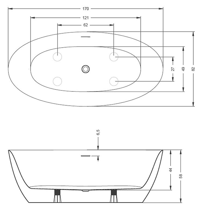 Ванна RIHO BETA 170x82 см, акрил
