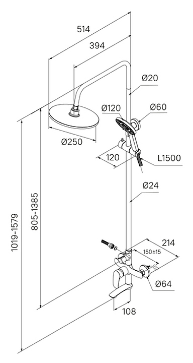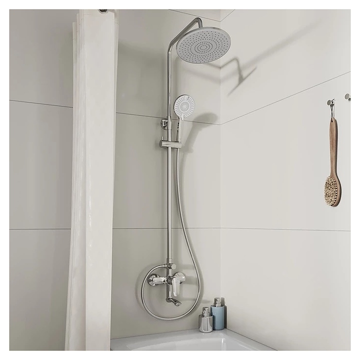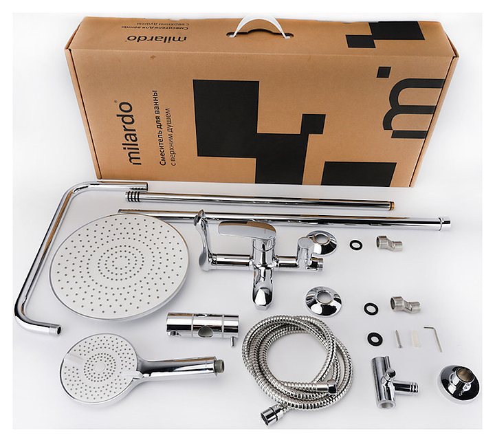 Душевая система Milardo Rora RORSB4FM06 предназначена для использования в ванных помещениях для подачи горячей и холодной воды. Модель оснащена поворотным изливом для наполнения ванны, душевым гарнитуром, включающим в себя тропический верхний душ, регулируемую по высоте душевую штангу, трехрежимную ручную лейку с душевым шлангом и регулируемый по высоте держатель для ручной лейки. Изделие покрыто оптимальной толщиной никель-хромового покрытия, защищающего смеситель от образования трещин и сколов. Особенности: