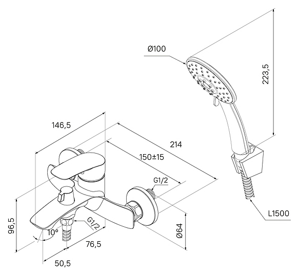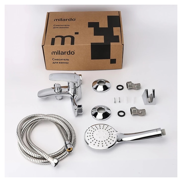 Смеситель для ванны и душа настенный Milardo Rora RORSB00M02 выполнен в современном стиле и используется для подачи и смешивания горячей и холодной воды. Модель оснащена душевым гарнитуром, включающим в себя ручной душ и душевой шланг. Изделие выполнено из высококачественной латуни, которая отличается прочностью, долговечностью и устойчивостью к перепадам температур, с устойчивым к износу и эрозии покрытием, благодаря которому не теряет презентабельный вид. Ручная лейка выполнена из пластика, душевой шланг - из нержавеющей стали. В комплекте поставляется душевая лейка и шланг. Особенности: