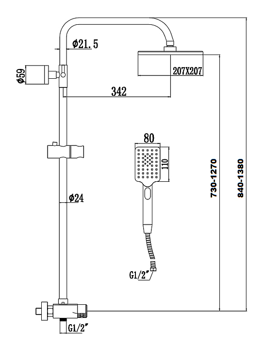 Душевая стойка Savol S-601144 предназначена для подачи горячей и холодной воды в ванных помещениях. Модель оснащена квадратным верхним и прямоугольным ручным душами. Керамический картридж обеспечивает контроль и точность при выборе напора и температуры воды. Изделие выполнено из латуни, отличающейся прочностью и долговечностью, шланг - в металлической оплетке. Дополнительные характеристики: