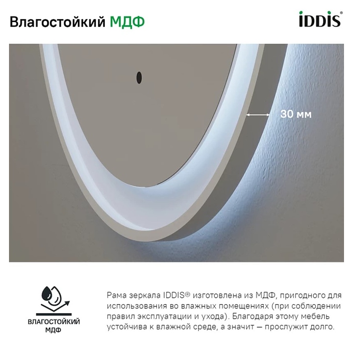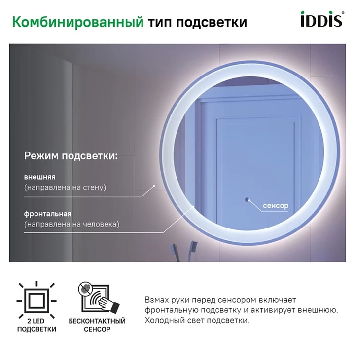 Зеркало IDDIS Esper ESP600Ri98 от популярного бренда дополнит интерьер ванной комнаты. Модель оснащена LED-подсветкой и бесконтактным сенсорным выключателем. Для управления подсветкой достаточно простого взмаха руки перед круглым сенсором в нижней части зеркала, который включает фронтальную подсветку и активирует внешнюю. Коллекция органично впишется в любой интерьер благодаря сбалансированному и элегантному дизайну. Корпус изделия выполнен из влагостойкого МДФ и покрыт белой плёнкой, что обеспечивает изделию привлекательный внешний вид, а также износостойкость и долговечность. Особенности: