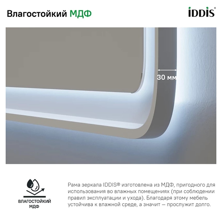 Зеркало с подсветкой IDDIS Esper ESP1000i98 100х70 см