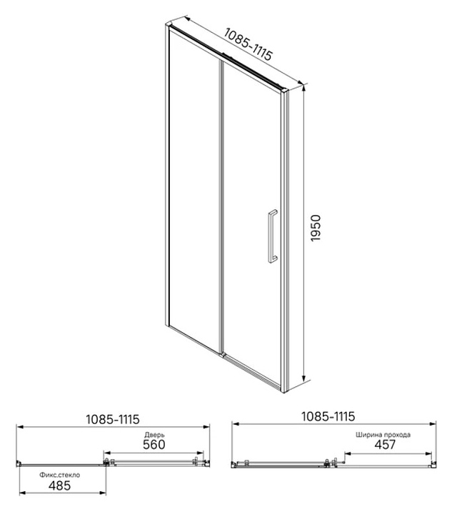 Дверь душевая IDDIS Slide SLI6BS1i69, 110х195 см, прозрачное, раздвижная, чёрная