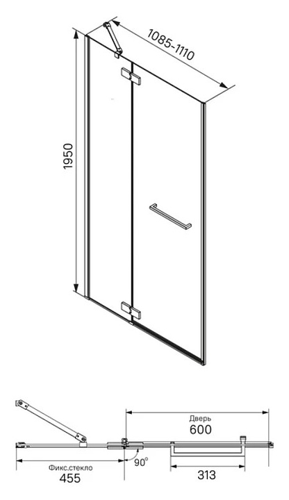 Дверь душевая IDDIS Slide SLI6CH1i69, 110х195 см, прозрачное, распашная, хром