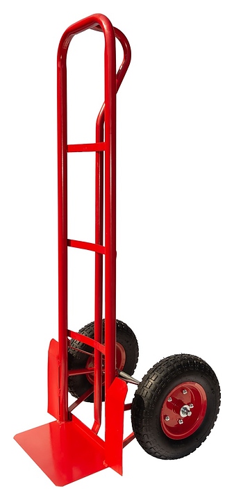 Производственная тележка Мастер-инструмент HT2400 предназначена для транспортировки крупногабаритных и тяжелых грузов на складах, строительных и сельскохозяйственных объектах, предприятиях общественного питания, торговли и других отраслей. Модель оснащена сплошной платформой, решетчатой спинкой, дугообразной ведущей рукояткой и 2 пневматическими колесами с не симметричной ступицей на цельной оси. Вертикально ориентированная сварная рама выполнена из профиля металлической трубы круглого сечения с антикоррозийным покрытием краской красного цвета, упаковка – из термопленки. В комплект поставки входят крепежные шайбы и шпильки для колес. Дополнительные характеристики: