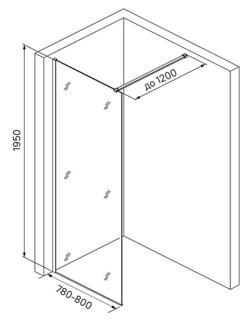 Перегородка душевая IDDIS Slide Walk-in SLI8BS8i23, 80х195 см, прозрачное, чёрная