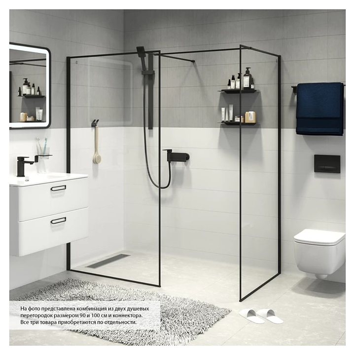 Перегородка душевая IDDIS Slide Walk-in SLI8BS9i23, 90х195 см, прозрачное, чёрная