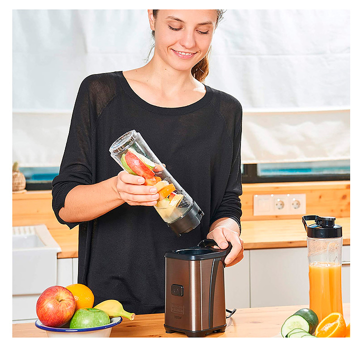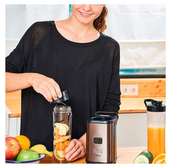 Блендер Black+Decker BXJBA350E предназначен для порционного приготовления овощных пюре, смузи, зеленых коктейлей, муссов и кремов в частных домах и квартирах. Модель оснащена 2 бутылками и 2 съемными ножами с 2 лезвиями каждый. Корпус и ножи выполнены из нержавеющей стали. Особенности: