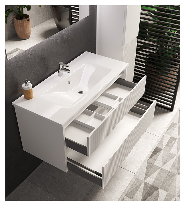 Тумба Sanvit Рольф-2 выполнена в современном стиле. Благодаря подвесной конструкции изделие не занимает много места и обеспечивает легкую уборку в ванной комнате. Модель оснащена двумя выдвижными ящиками с механимом плавного закрывания «Push-To-Open». Корпус выполнен из влагостойкой МДФ в пленке ПВХ белого цвета, которая обеспечивает изделию привлекательный внешний вид, износостойкость и долговечность. Тумба приобретается только в комплекте с раковиной Sanvit 9080 D. Особенности: