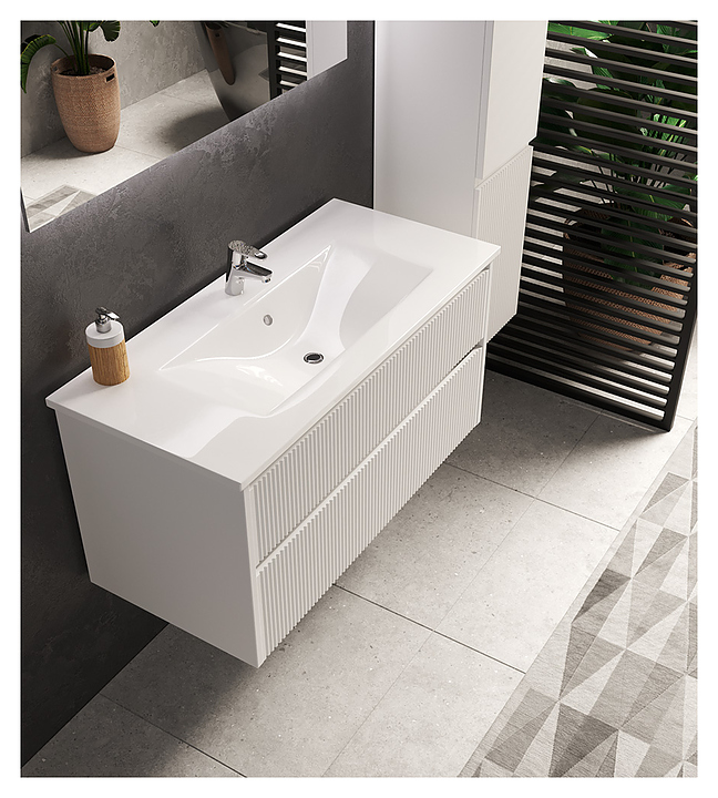 Тумба Sanvit Рольф-2 выполнена в современном стиле. Благодаря подвесной конструкции изделие не занимает много места и обеспечивает легкую уборку в ванной комнате. Модель оснащена двумя выдвижными ящиками с механимом плавного закрывания «Push-To-Open». Корпус выполнен из влагостойкой МДФ в пленке ПВХ белого цвета, которая обеспечивает изделию привлекательный внешний вид, износостойкость и долговечность. Тумба приобретается только в комплекте с раковиной Sanvit 9120 D. Особенности:
