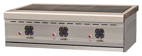 Настольная электрическая плита ONEGA ПЭН-3 Н предназначена для приготовления широкого ассортимента блюд в наплитной посуде в кафе, ресторанах и на других предприятиях общественного питания и торговли. Модель оснащена рабочей поверхностью с 3 варочными зонами и фронтальной электромеханической панелью управления. Лицевые элементы корпуса выполнены из нержавеющей стали, задняя стенка – из оцинкованной стали, рабочая поверхность – из чугуна. Особенности: