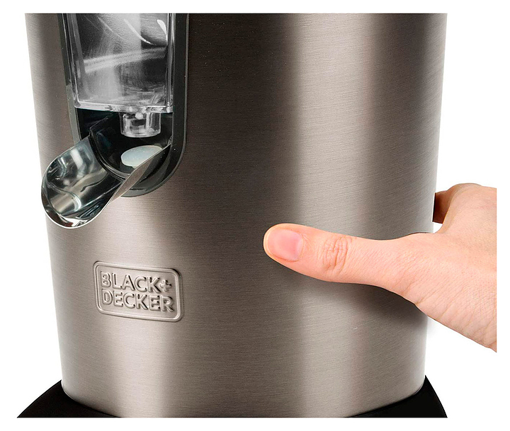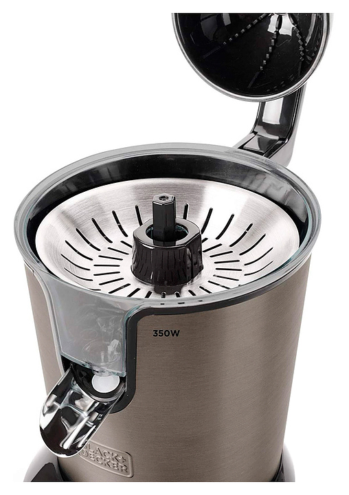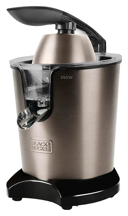Соковыжималка Black+Decker BXCJ350E предназначена для получения свежевыжатого сока апельсинов, лимонов и других цитрусовых в частных домах, квартирах, отелях и офисах. Модель оснащена прорезиненными нескользящими ножками. Корпус выполнен из нержавеющей стали с покрытием. защищающим от отпечатков пальцев, рычаг - алюминиевый, фильтр - из нержавеющей стали, конусы - из пластика. Особенности: