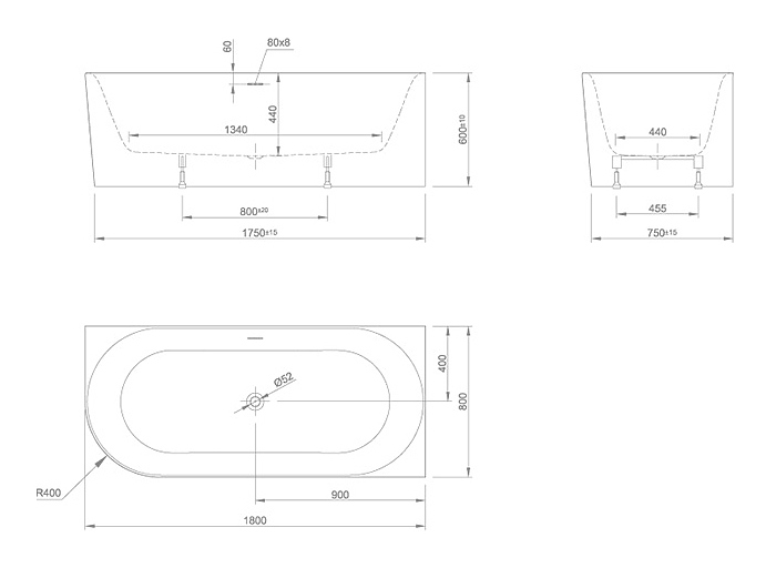 Ванна Knief Fresh Corner L 180х80 см, скругление слева, угол справа, акрил