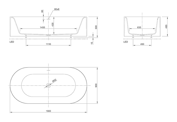 Отдельностоящая ванна Knief Moon идеально впишется в интерьер ванной комнаты. Модель оснащена встроенной LED подсветкой и может быть установлена в любом месте помещения, где имеется доступ к системе водоснабжения. Расположенный по центру слив не будет мешать купанию. Изделие выполнено из композитного материала Stone, который отличается высокими теплоизоляционными свойствами, устойчивостью к загрязнениям, простым уходом и долговечностью. В комплект поставки входит слив Click-Clack. Дополнительные характеристики: