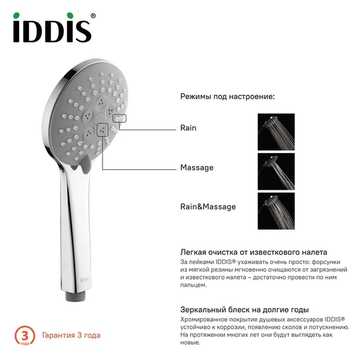 Душевая лейка IDDIS Optima Home 0703F00i18 предназначена для использования в ванных комнатах. Хромированное покрытие лейки устойчиво к коррозии, появлению царапин, сколов и потускнению. Особенности: