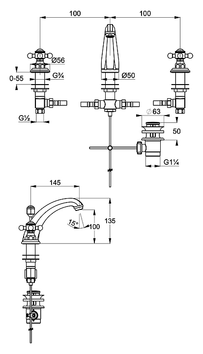 Смеситель для раковины KLUDI Adlon 510430520 на 3 отверстия, хром