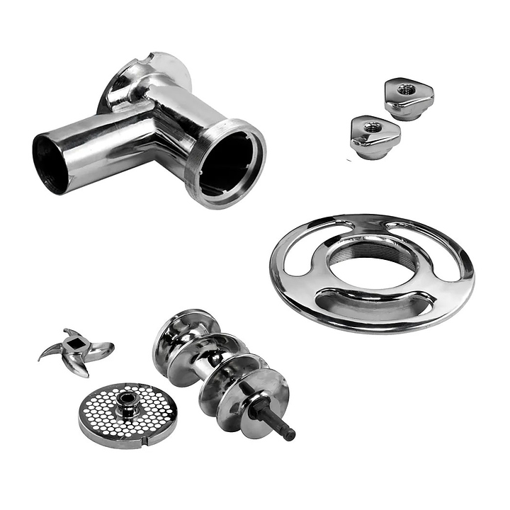 Мясорубка FIMAR 22/TE предназначена для измельчения мяса и рыбы на фарш, повторного измельчения котлетной массы и набивки колбас на предприятиях общественного питания и торговли. Модель оснащена режущей системой Enterprise, зубчатым редуктором в масляной ванне. Внутренние детали съемные, что удобно для их мытья в посудомоечной машине. Корпус выполнен из полированного алюминия, самозатачивающийся нож, решетка, бункер и извлекаемый режущий узел - из нержавеющей стали. В комплект поставки входят решетка и самозатачивающийся нож. Дополнительные характеристики: