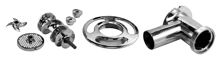 Мясорубка FIMAR 22/TS предназначена для измельчения мяса и рыбы на фарш, повторного измельчения котлетной массы и набивки колбас на предприятиях общественного питания и торговли. Модель оснащена режущей системой Enterprise, съемным режущим узлом, зубчатым редуктором в масляной ванне и реверсом. Внутренние детали съемные, что удобно для их мытья в посудомоечной машине. Корпус, самозатачивающийся нож, решетка, бункер и извлекаемый режущий узел выполнены из нержавеющей стали. В комплект поставки входят решетка и самозатачивающийся нож. Дополнительные характеристики: