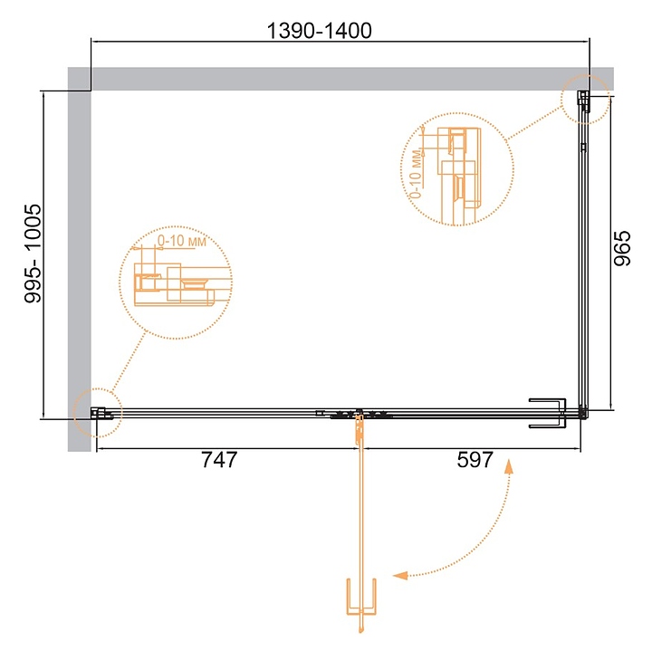 Уголок душевой CEZARES BELLAGIO-AH-1-140/100-C-NERO 140х100х197 см