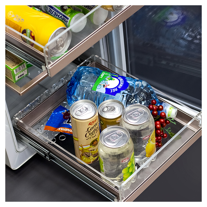 Холодильник MEYVEL MD35 предназначен для охлаждения и кратковременного хранения напитков, вина, лекарственных препаратов, деликатесов и шоколада, диетических продуктов и фруктов, детского питания и косметических средств на предприятиях общественного питания, торговли, в барах, ресторанах, специализированных салонах эстетических услуг, частных домах или квартирах. Модель оснащена сенсорным управлением и панорамной подсветкой. Выкатные полки выполнены из пластика, дверь - из двойного стекла с УФ-фильтром. Особенности: