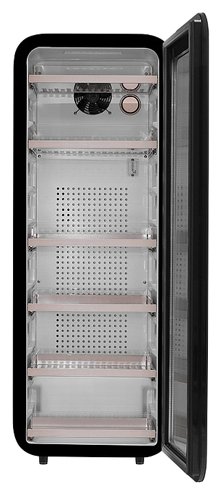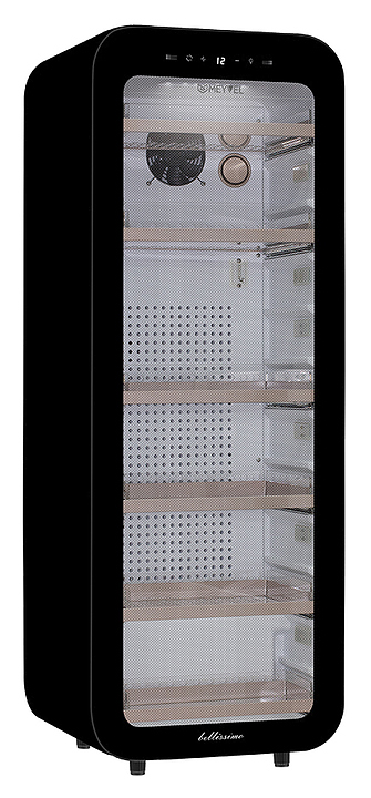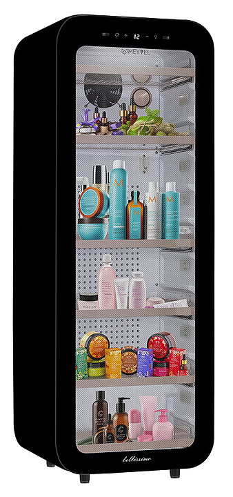 Холодильник MEYVEL MD105 предназначен для охлаждения и кратковременного хранения напитков, вина, лекарственных препаратов, деликатесов и шоколада, диетических продуктов и фруктов, детского питания и косметических средств на предприятиях общественного питания, торговли, в барах, ресторанах, специализированных салонах эстетических услуг, частных домах или квартирах. Модель оснащена сенсорным управлением и панорамной подсветкой. Выкатные полки выполнены из пластика, дверь - из тройного стекла с УФ-фильтром. Особенности: