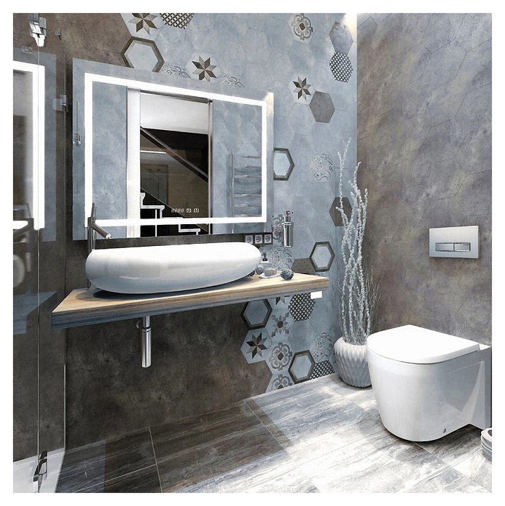 Зеркало с LED-подсветкой Silver Mirrors Livia neo LED-00002404 80х60 см, с часами и анти-пар
