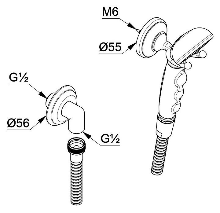 Душевой гарнитур KLUDI Adlon 2710505 используется в ванных комнатах. Модель оснащена круглой лейкой, шлангом и душевым держателем. В комплект поставки входят ручная лейка, шланг, настенный держатель и угловое соединение. Особенности:
