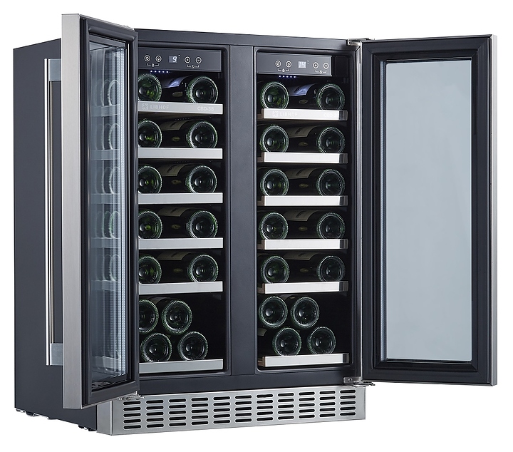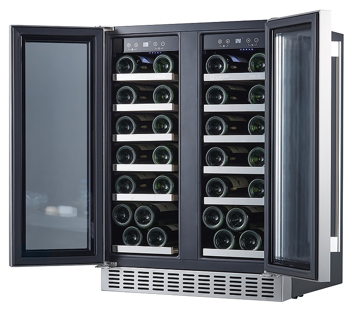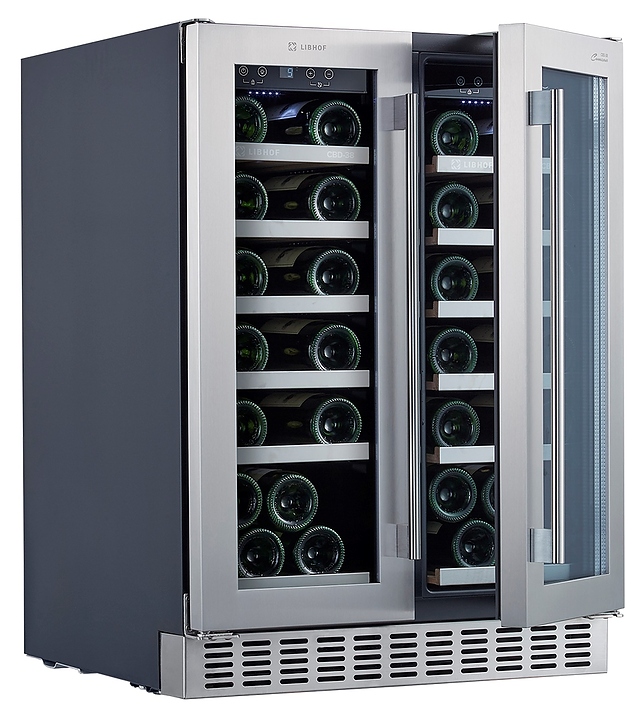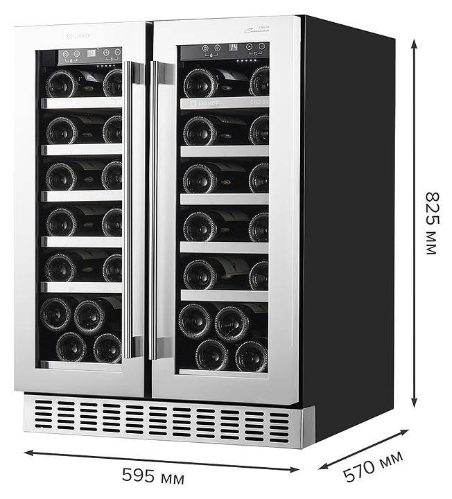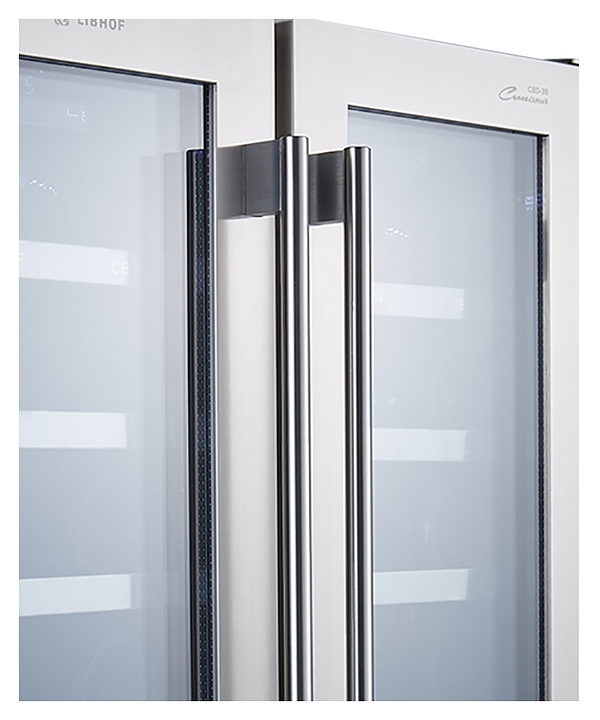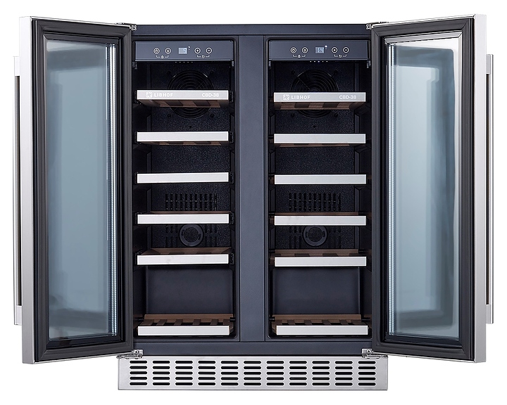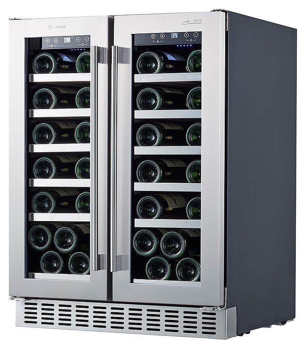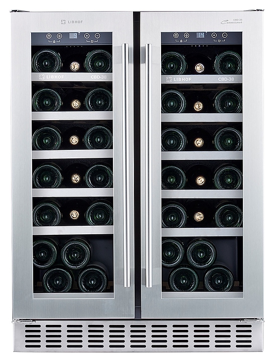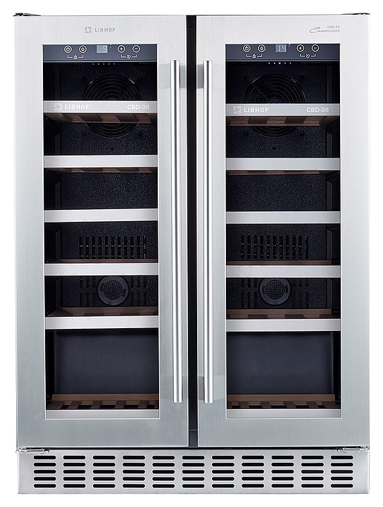 Встраиваемый винный шкаф Libhof Connoisseur CBD-38 silver предназначен для хранения при оптимальных условиях бутилированного вина различных сортов в барах, ресторанах, специализированных магазинах, подсобных складских помещениях, а также домашних условиях. Модель оснащена холодильной камерой с 2 независимыми температурными зонами, 12 выдвижными полками, съемной вентиляционной решеткой, 2 распашными дверьми с ручками на внешних петлях, прозрачным обзорным остеклением, сенсорной панелью управления внутри шкафа и цифровым дисплеем для каждой зоны. Корпус выполнен из металла с антикоррозийным покрытием, полки - из массива бука с хромированным торцом. Особенности: