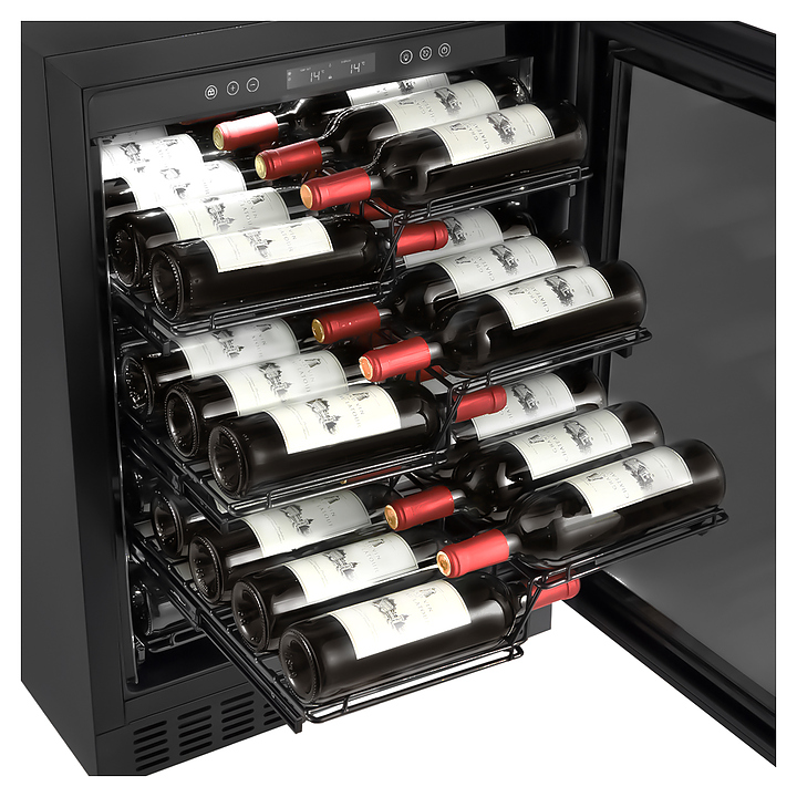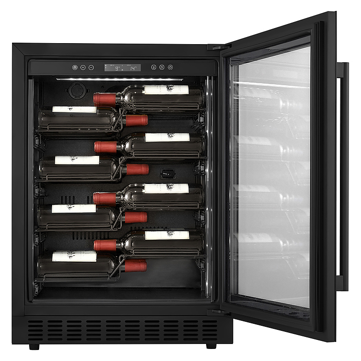 Винный шкаф Libhof Esthete EZ-36 предназначен для хранения при оптимальных условиях бутилированного вина различных сортов в барах, ресторанах, специализированных магазинах, подсобных складских помещениях, а также домашних условиях. Модель оснащена холодильной камерой с 4 специальными z-shape полками, съемной цокольной вентиляционной решеткой, распашной дверью на внутренних петлях с ручкой, дымчатым обзорным остеклением, сенсорной панелью управления и цифровым дисплеем. Корпус и полки выполнены из металла. Особенности:
