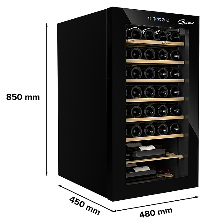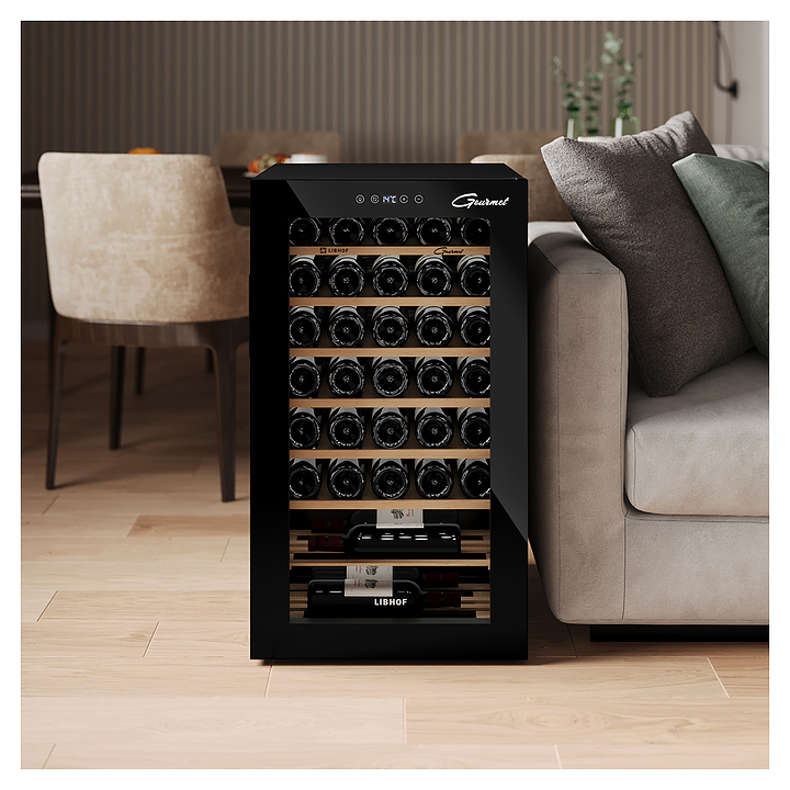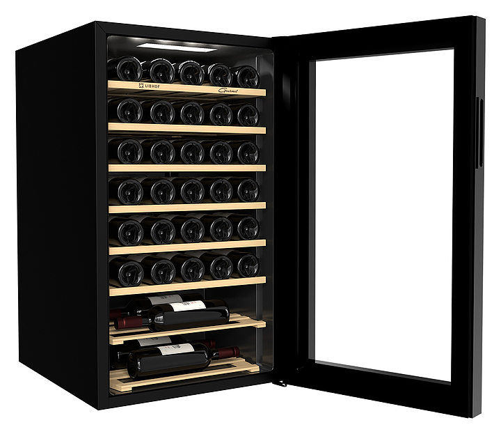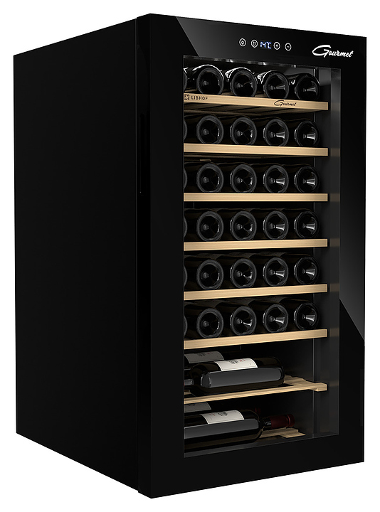 Винный шкаф Libhof Gourmet GM-34 предназначен для охлаждения вина перед подачей, длительного хранения или созревания винной коллекции в барах, ресторанах, специализированных магазинах, подсобных складских помещениях или в домашних условиях. Модель оснащена холодильной камерой с 4 полками, распашной дверью на внешних петлях с ручкой, дымчатым обзорным остеклением, сенсорной панелью управления и дисплеем. Корпус выполнен из металла, полки - из массива бука. Особенности: