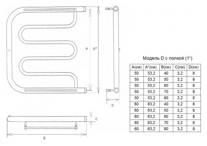 Полотенцесушитель водяной Двин 4627086011803 D 60/80 1" К0 с 2 полками, полированный