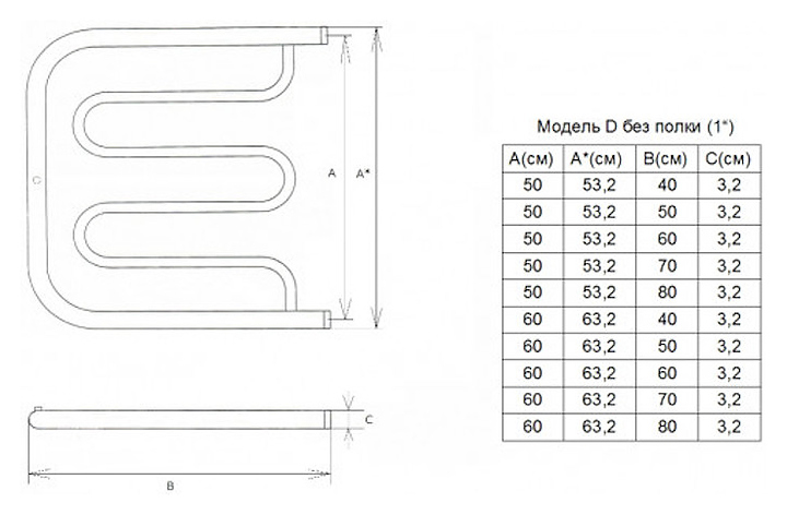 Полотенцесушитель водяной Двин 4627086011759 D 50/40 1" К0 полированный