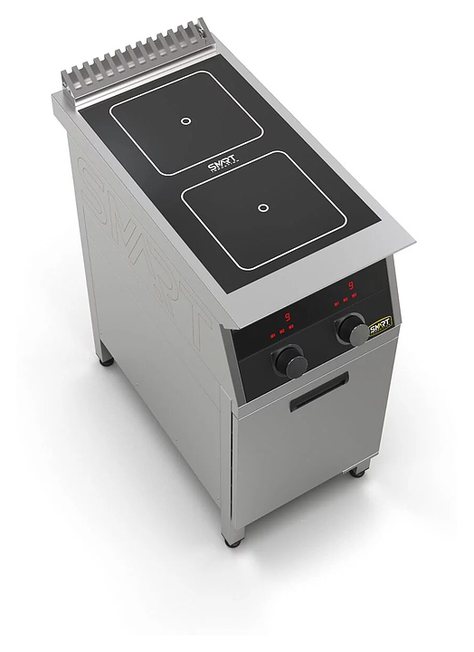 Индукционная плита SMART INDUCTION C92-35B предназначена для приготовления и быстрого разогрева блюд на предприятиях общественного питания и торговли. Модель оснащена электронно-механической панелью управления с индикацией, съемным жировым фильтром для отделения жира и влаги от поступающего внутрь аппарата воздуха и регулируемыми по высоте ножками. Корпус, столешница и воздуховод выполнены из нержавеющей стали AISI430, рабочая поверхность - из стеклокерамики, передняя панель имеет стойкое полимерное покрытие черного цвета. Особенности: